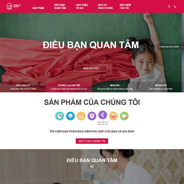 Mẫu website dịch vụ bảo hiểm AIA Việt Nam WBT1179