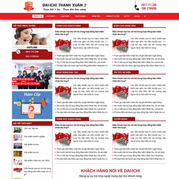 Mẫu website dịch vụ bảo hiểm Dai-ichi Thanh Xuân WBT198 có cấu trúc và chức năng như một trang thương mại điện tử, mục tiêu trở thành một kênh bán hàng hữu hiệu, mang lại doanh thu vượt bậc cho quý khách và các xưởng sản xuất.
