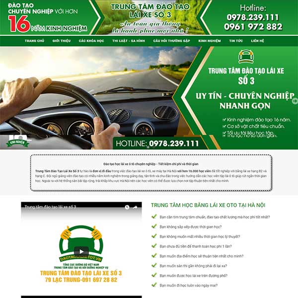 Mẫu website trung tâm đào tạo lái xe Số 3 WBT1150